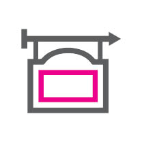 Menovky a označenie dverí, smerové šípky, čísla miestností a informačné panely. Totemy, značenie parkovania. Vonkajšie A stojany, kriedové tabule a panely.